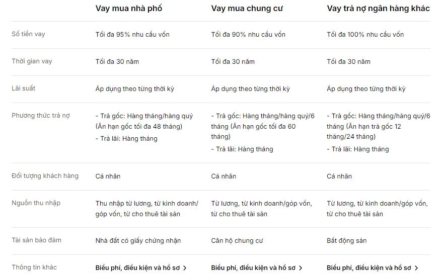 Còn tại TPBank, lãi suất vay mua nhà dự án chỉ từ 6,9%/năm với hạn mức cho vay tối đa 90% nhu cầu vốn. Thời gian vay lên đến 30 năm.
